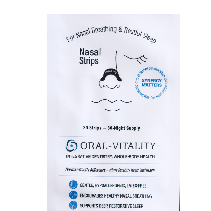 Overview Oral‑Vitality™ Nasal Strips are flexible, drug‑free nasal dilators designed to gently lift and open nasal passages — helping improve airflow and reduce resistance during sleep.